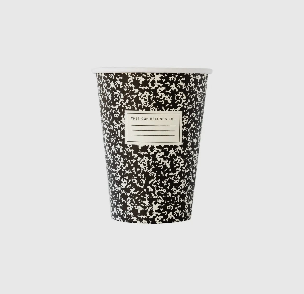 Make school celebrations fun with these composition notebook inspired paper cups! Has a space for writing your name just like the notebooks. Add this vintage vibe to your party!
