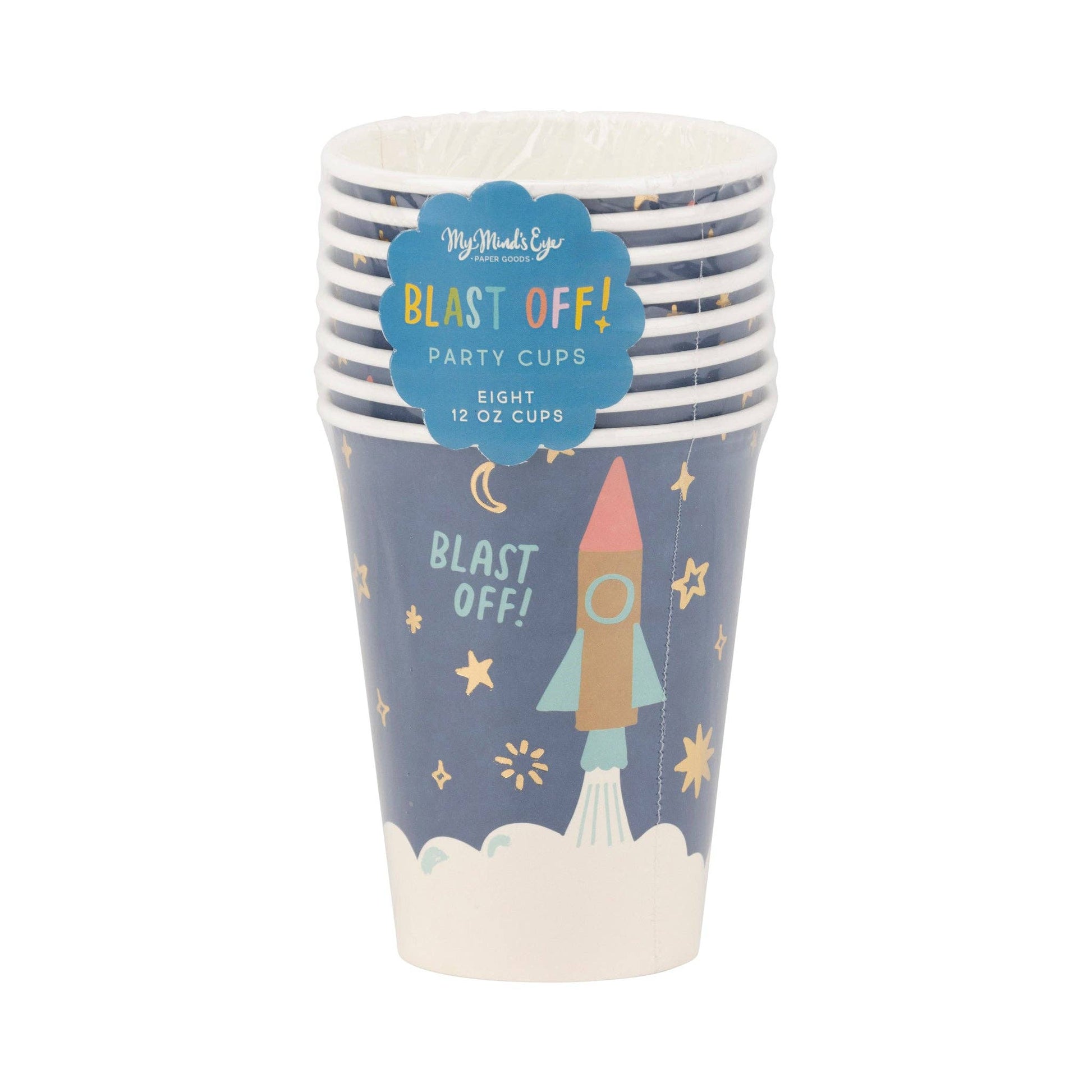 Get the party started with our Space Paper Party Cups! Perfect for any occasion, these cups add a touch of fun and playfulness with their space-themed design. Sip in style and let your imagination soar with our whimsical and unique cups. • 8 cups per package • 12 oz cups • 4.5" tall and 3.5" round at top • gold foil
